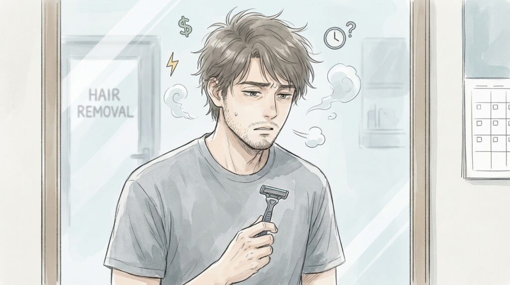 脱毛を途中でやめてしまった経験は、多くの男性にとって「後悔」と「面倒さ」を伴います。