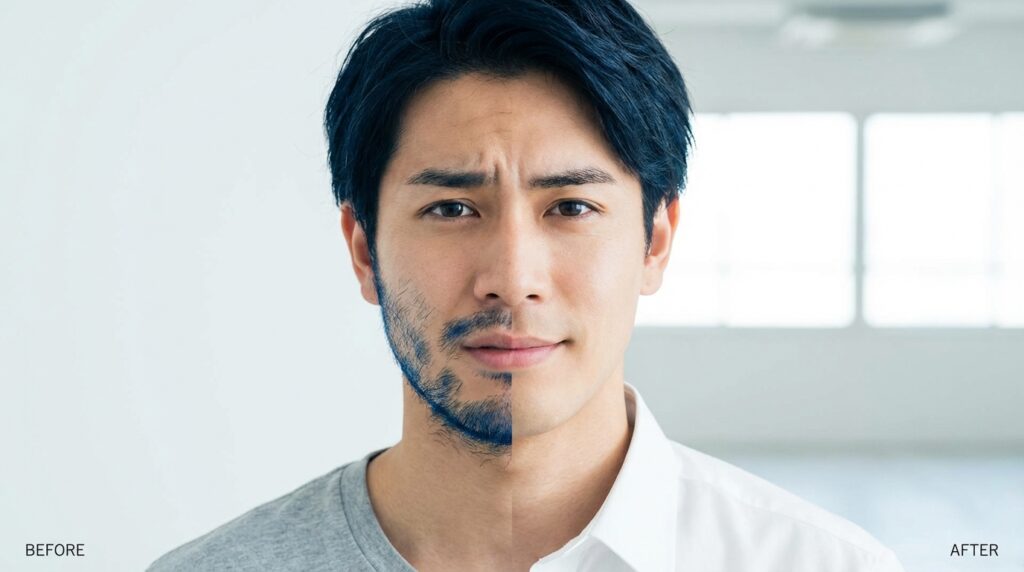 青みが目立つと、自分では清潔にしているつもりでも「疲れて見える」「無精に見える」など、外見の印象に悩むことが増えてきます。ただ、その影は“体質だから仕方ない”というものではなく、仕組みを理解し、自分に合った方法を選べば確実に改善できます。